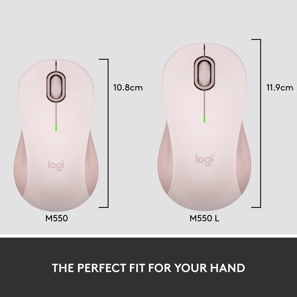Choose the Signature M550 that fits you best. We recommend the M550 for small-to-medium hands and M550 L for large-sized hands. Unsure which mouse is right for you? Check out our sizing guide below.